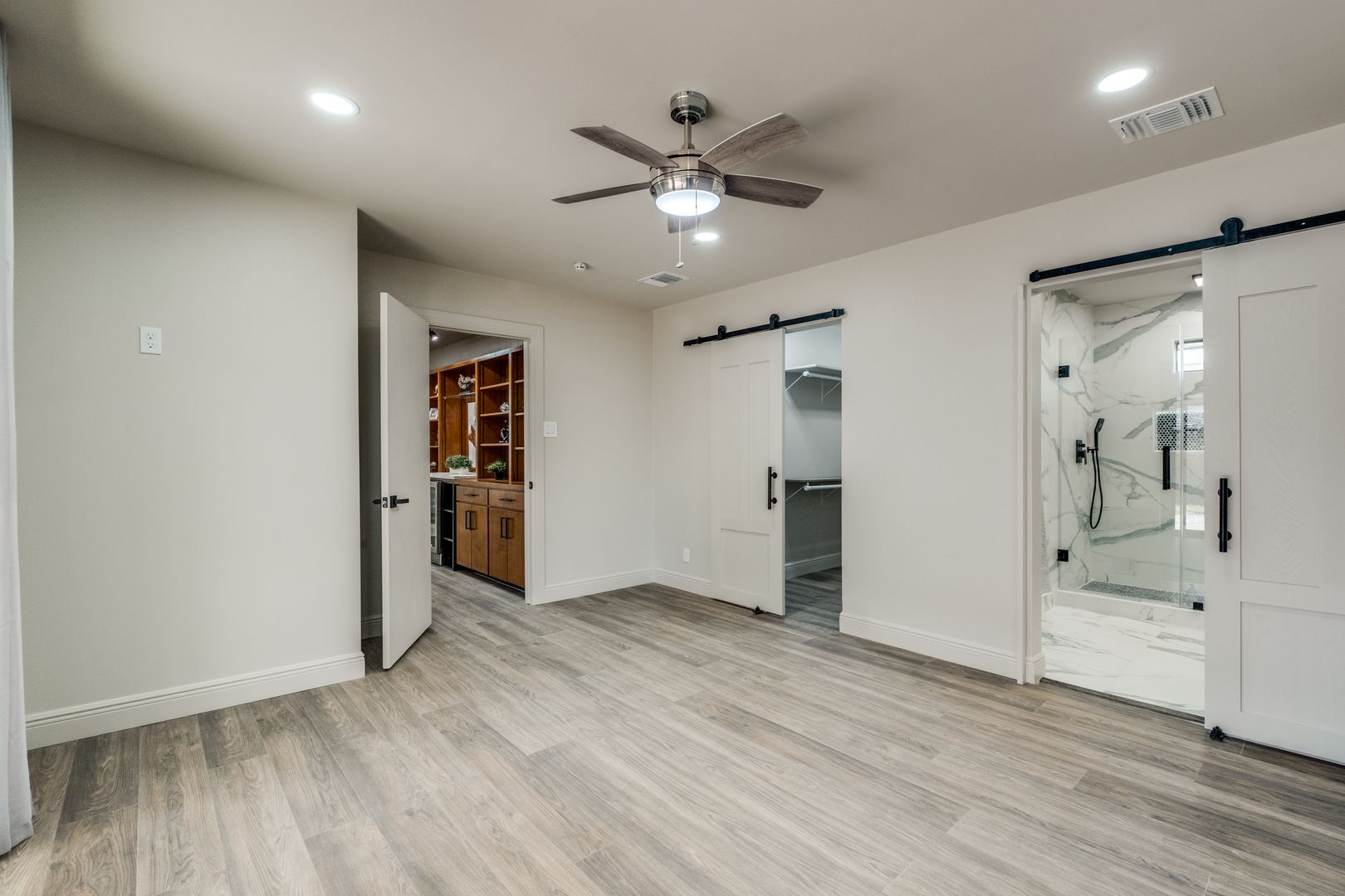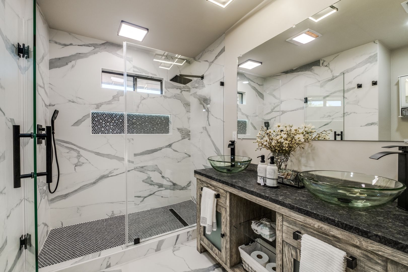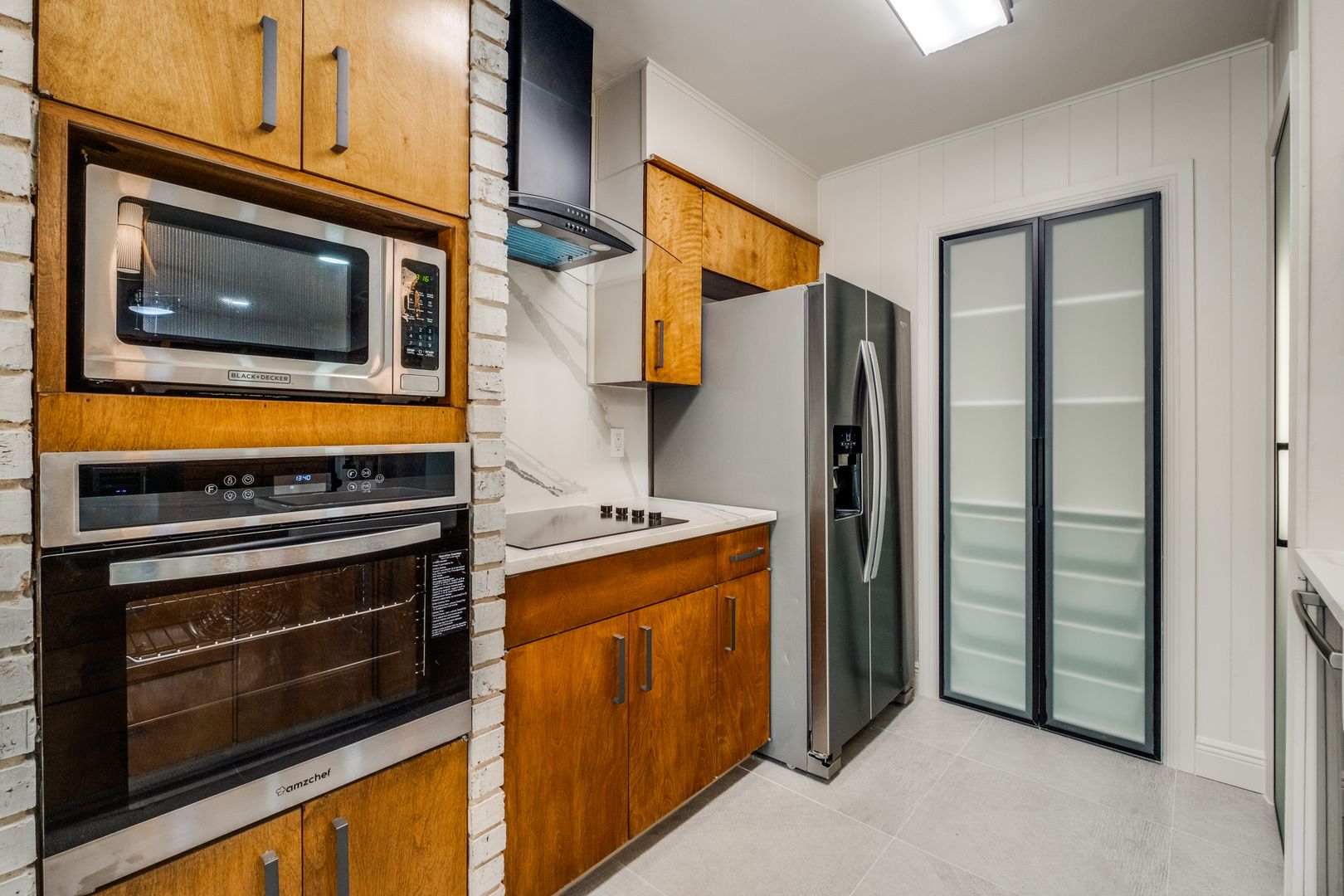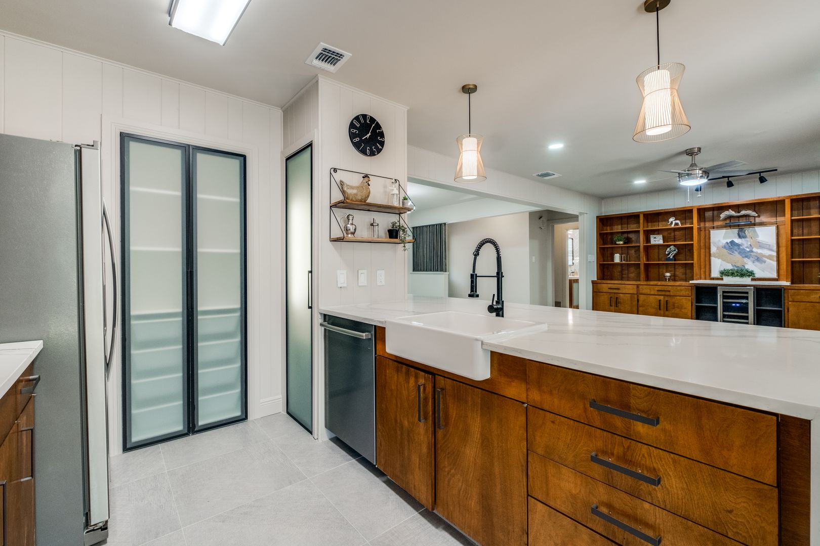 The kitchen and bathrooms truly shine, featuring stylish finishes and thoughtful design. The kitchen boasts quartz countertops with a sleek waterfall edge and an extended island, perfect for entertaining guests or enjoying family meals.