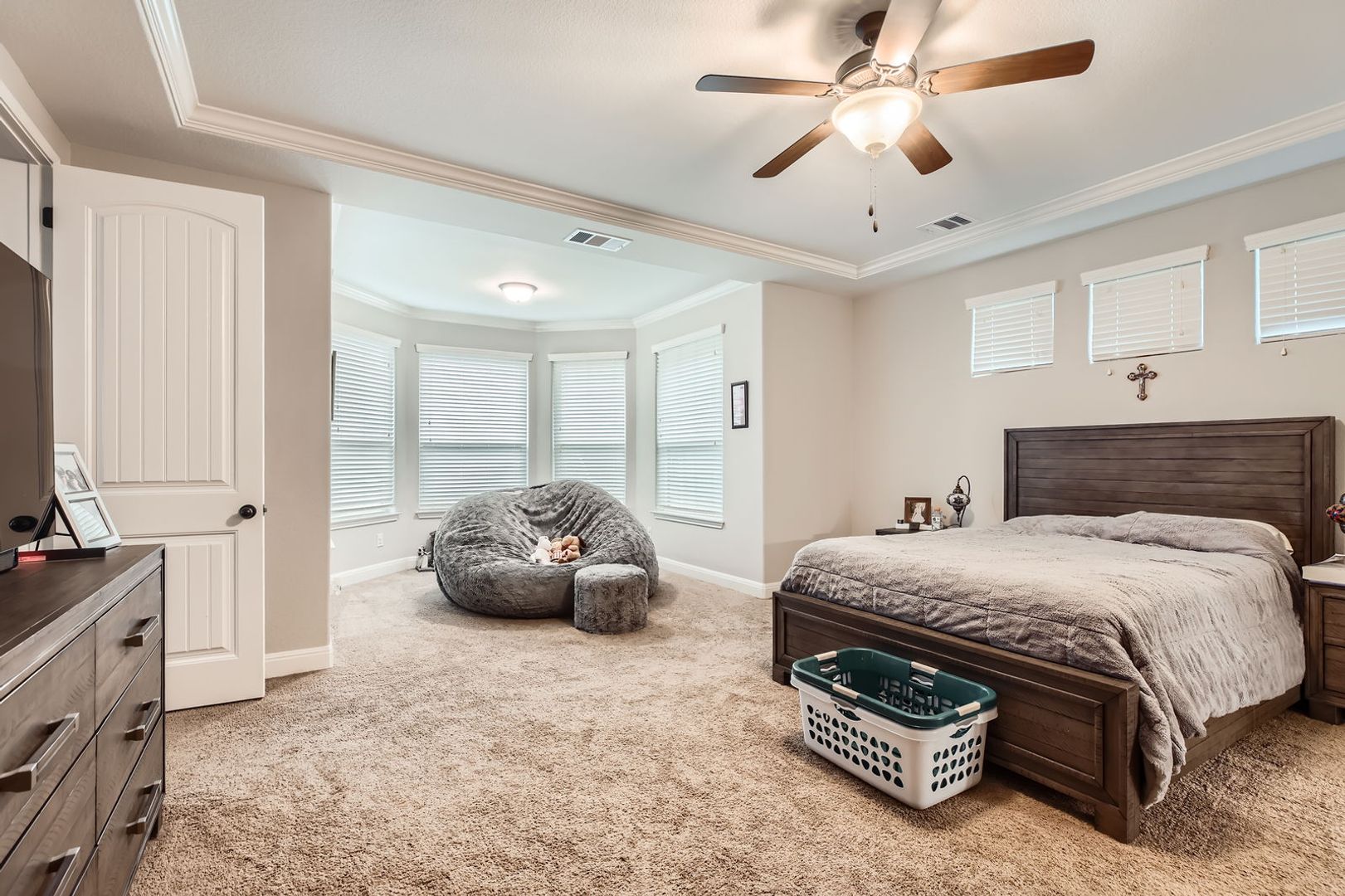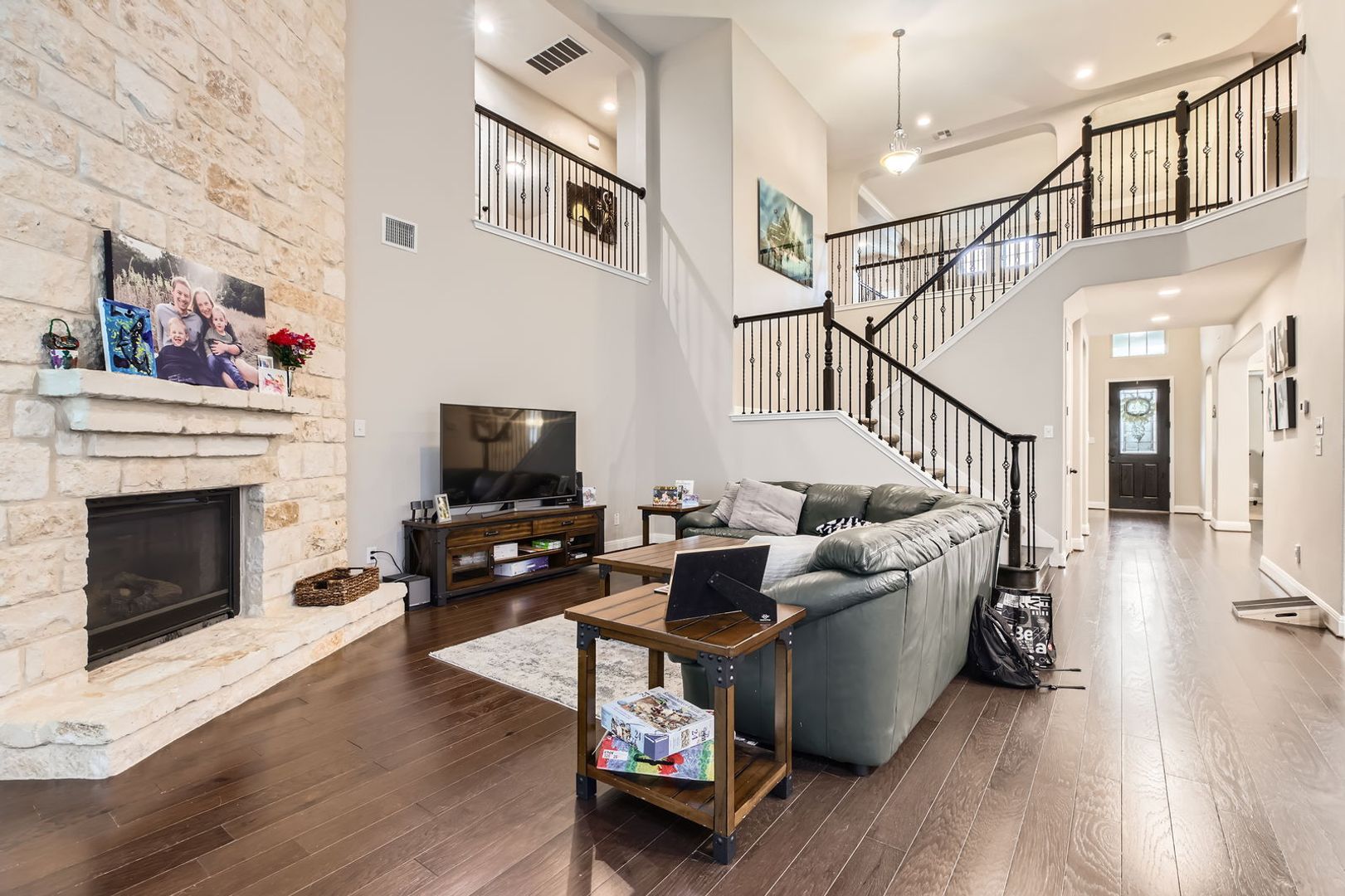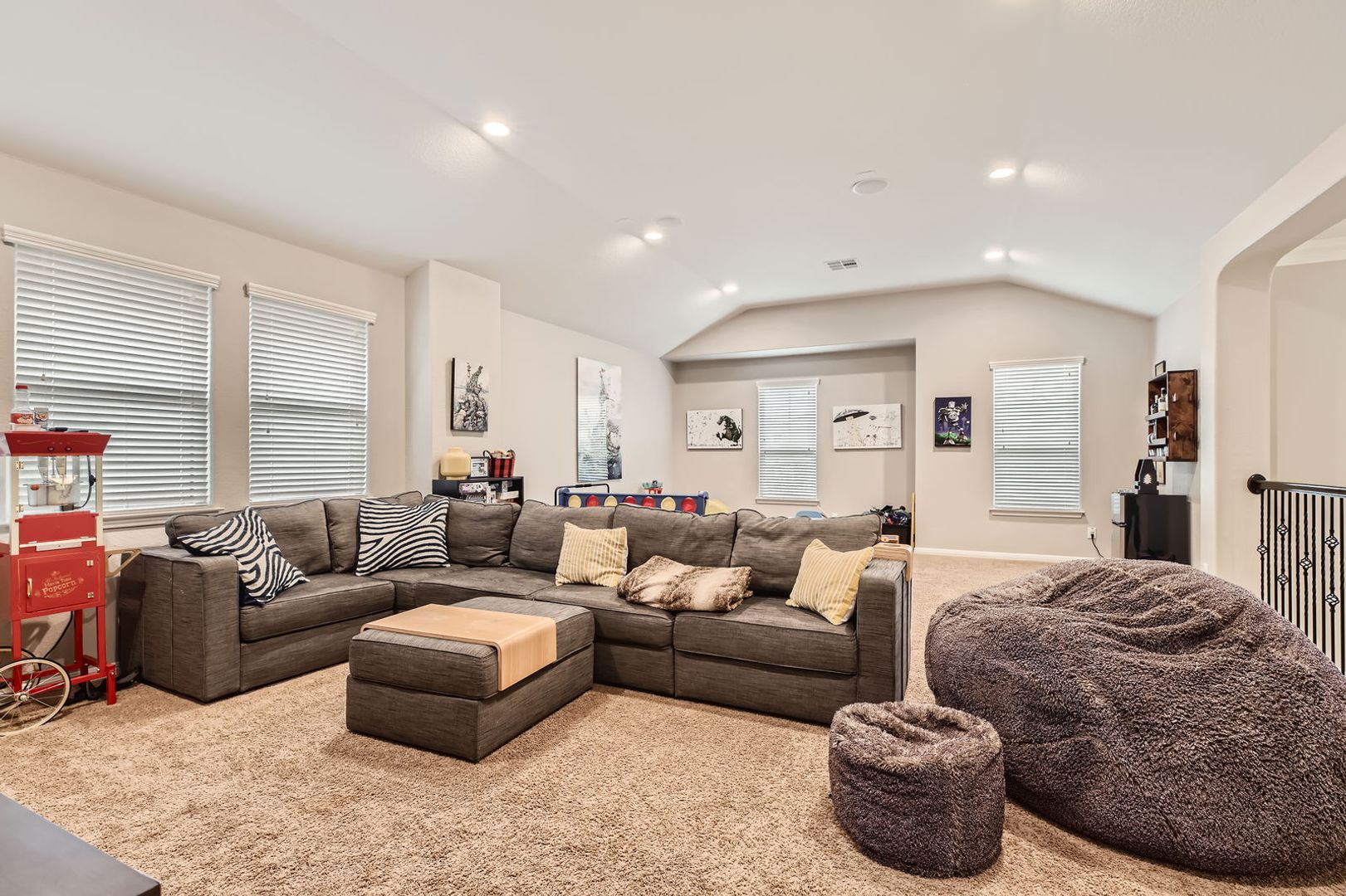Step inside this expansive and thoughtfully designed 5-bedroom home, where spaciousness and comfort take center stage. With three separate living areas and a dedicated study, there’s room for everyone to spread out, work, relax, and entertain with ease. The open-concept floor plan is accentuated by soaring ceilings, creating a light-filled and airy ambiance throughout the main living spaces. Whether you're hosting a holiday gathering or enjoying a quiet night in, you'll find incredible flexibility in how each room can be used. Kitchen has modern appliances and generous counter space. Unwind year-round in your hot tub, gather around the cozy fireplace during the holidays, or take the fun upstairs to the expansive game room, ideal for movie or game nights. Beyond your front door, enjoy all the perks of a vibrant community, including a swimming pool, playground, and scenic jogging trails — perfect for active lifestyles and outdoor enjoyment. Tenants are enrolled in a residential benefit package.
